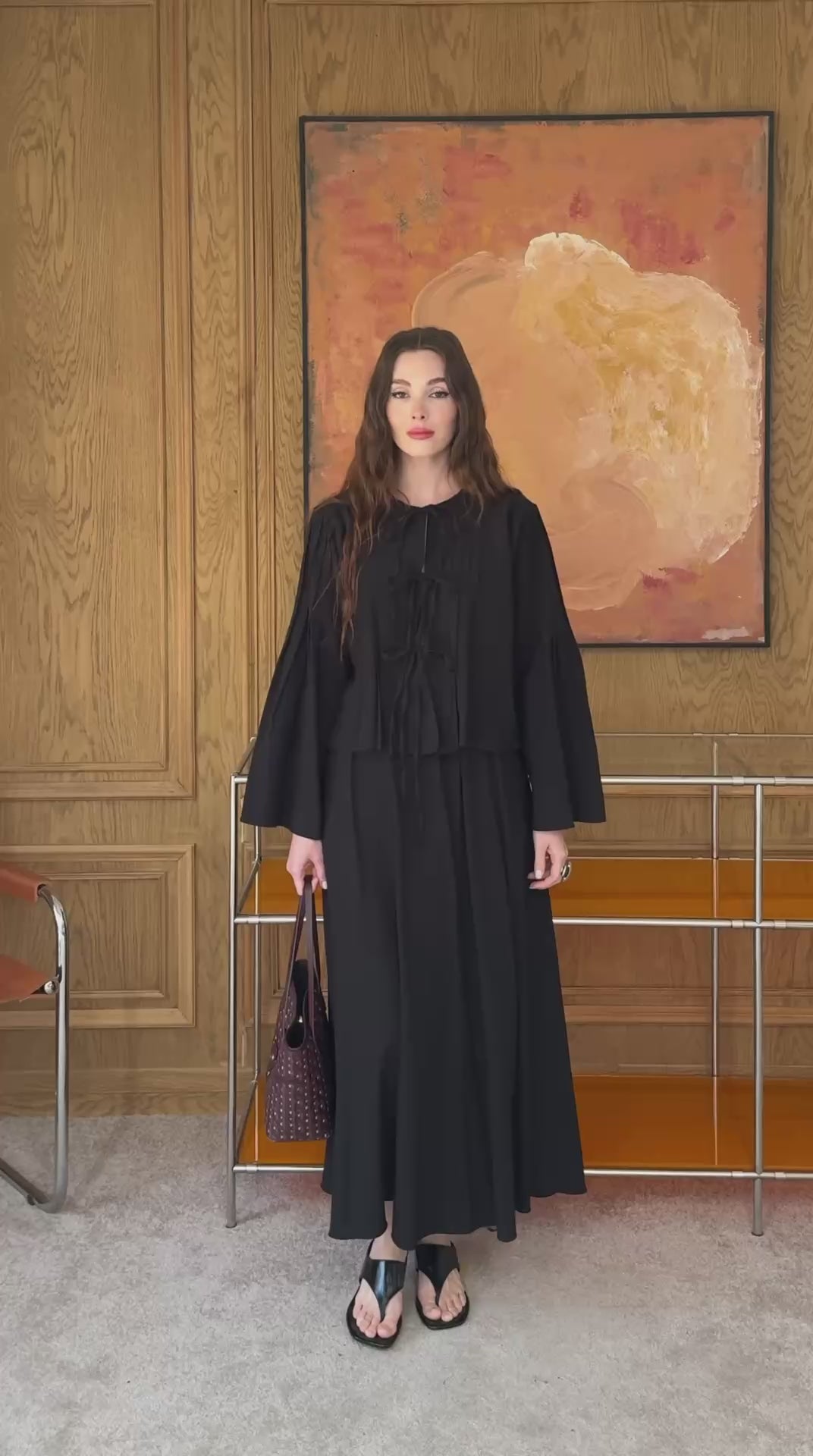 This linen set stands out with its pintuck details and front-tie design, offering a refined and distinctive style. Its natural texture ensures comfort, while the modern cut delivers an effortlessly contemporary look.